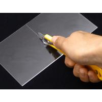 OLFA プラスチックカッター|特長:スライド式で刃が収納でき安全性がアップしました。 アクリル板・塩ビ板などのプラスチック板専用カッターです。 各種硬質材へのすじ入れにも使えます。
