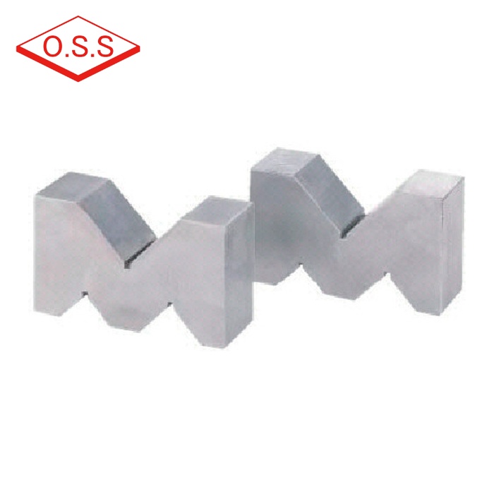OSS Vブロック|特長:V溝は90°に仕上されており円筒の簡易検査、丸棒のケガキなどに使用します。 一体加工となっております。 精度は機械仕上とA級仕上(各面の平行度、±直角度、底面とV溝の平行度)です。