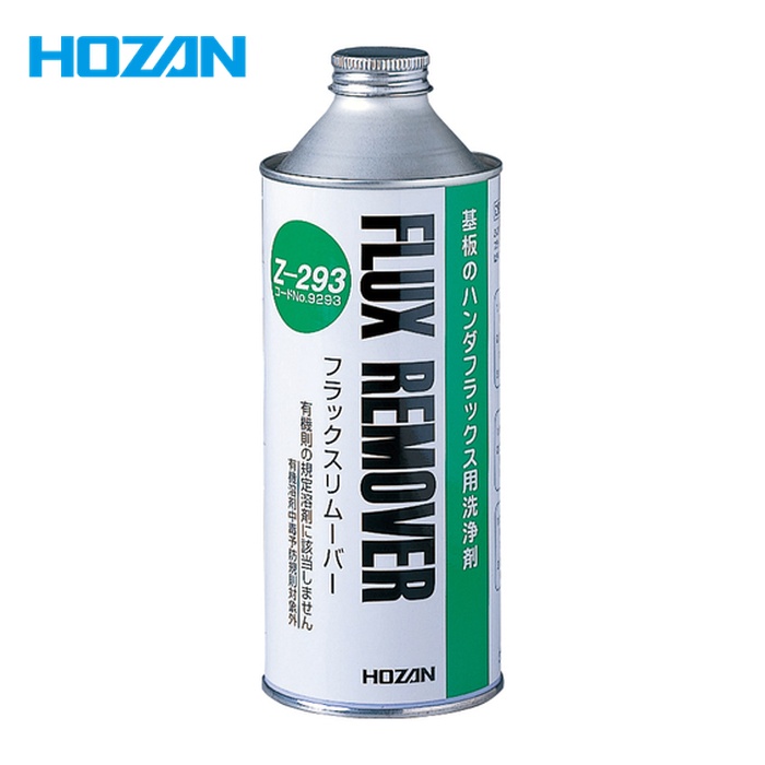 HOZAN フラックスクリーナー|特長:手作業のフラックス洗浄を想定したクリーニング剤です。 プリント基板上のフラックスを白く跡形を残さずきれいに洗浄できます。 人体に影響のある物質を排しました。