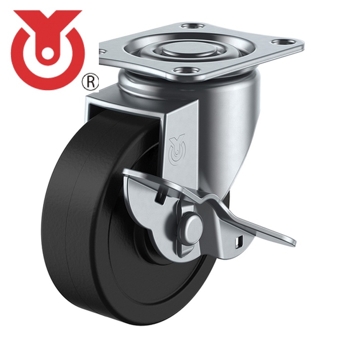 ユーエイ プレート式静電気対策キャスター(ゴム車)|特長:走行性・耐荷重を備えた標準的な小型キャスターです。 走行性に優れ、静電気を除去することができる導電性ゴム車輪を使用しています。