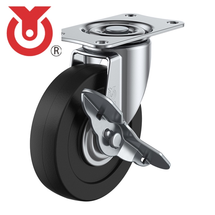 ユーエイ プレート式 自在 キャスター 導電ゴム 車輪径100mm ストッパー付き Eタイプ E-S型 取付寸法82×40 (1個) 品番:E100RHES