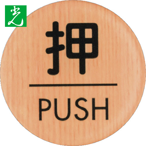 光 ウッドライクマットサイン丸型押すPUSH (1枚) 品番:WMS57-1