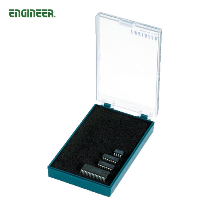 ENGINEER 導電性容器|特長:帯電防止プラスチックケースに高密度10mm厚の導電ポリエチレンフォームを敷いたICケースです。 電子パーツ等を収納、持ち運び時の静電気障害から保護します。 蓋は透明度が高く収納物の確認ができます。