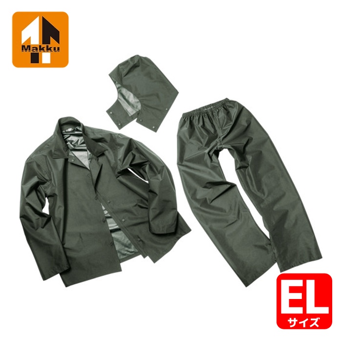 マック Makku 雨具 合羽 カッパ レインスーツ きどらないレインウェアセットアップ ダークグリーン EL (1着) 品番:AS-4700-DG-EL