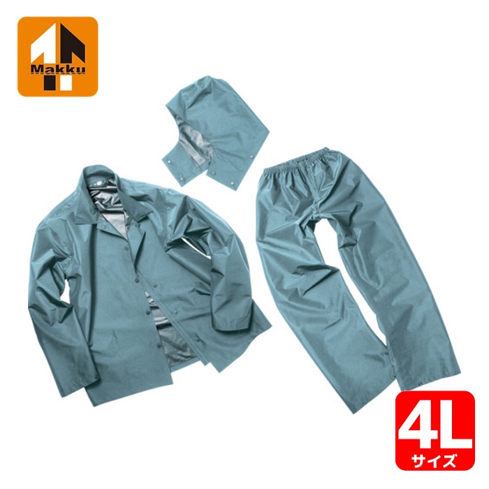 マック Makku 雨具 合羽 カッパ レインスーツ きどらないレインウェアセットアップ ブルーグレー 4L (1着) 品番:AS-4700-BG-4L