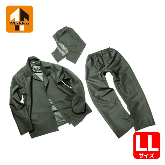 マック Makku 雨具 合羽 カッパ レインスーツ きどらないレインウェアセットアップ ダークグリーン LL (1着) 品番:AS-4700-DG-LL