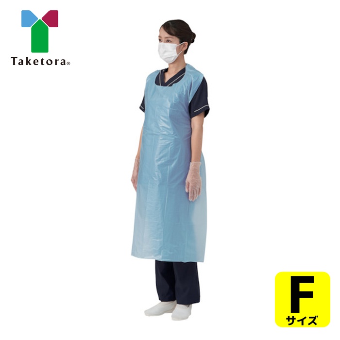 竹虎 エプロン|特長:袖なしタイプです。 撥水性があり、焼却処分してもダイオキシンなど発生させないポリエチレン製です。 箱から取り出したあとエプロンが広げやすく、まとわりつきにくいエンボス加工を施しています。
