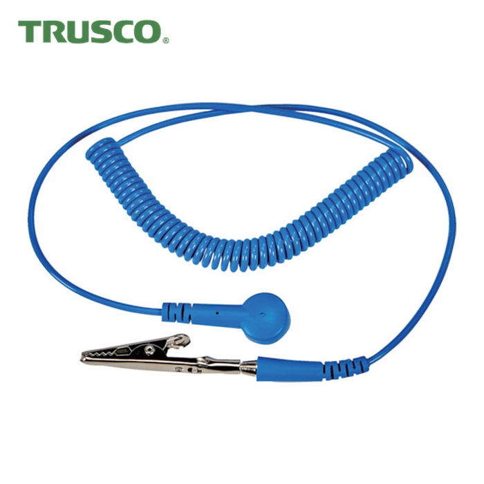 TRUSCO 静電気対策接地用品|特長:導電マットのグラウンドタップに接続することができます。 バナナプラグ付で、アース設備と簡単に接続できます。 ASEC28、ASEC38はコネクター部からコイルまで約1mありますので、衣類の中にコードを入れてリストストラップを接続できます。