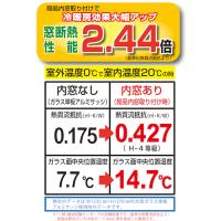 ● 窓断熱性能2.44倍(基準化熱貫流抵抗より)JIS断熱等級H−4等級 光ポリカ中空ボード4mm厚を使用した数値。(ポリカ中空ボードは別売となります。)