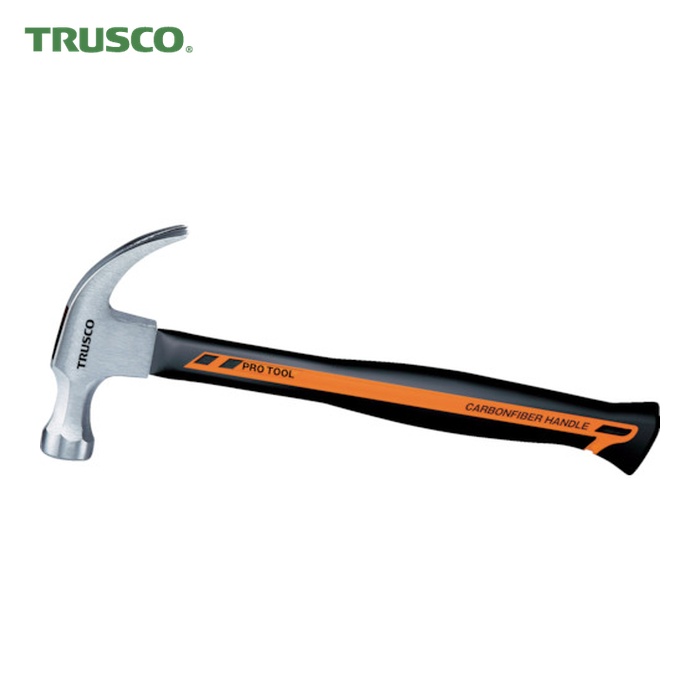 TRUSCO くぎ抜きハンマー|特長:高級スポーツ用品で使われる高性能素材カーボンファイバー柄採用により、軽量化と高強度を実現しました。 滑りにくい材質のハンドルを採用しています。 頭部は完全焼き入れ処理です。
