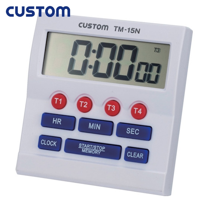CUSTOM タイマー|特長:4通りのタイマー設定が可能です。 時計は12/24時間表示切り替え可能で、カウントアップ機能付です。