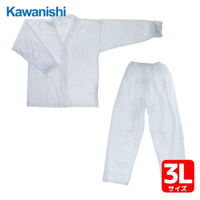 川西工業 雨具 合羽 カッパ レインスーツ ビニールクリア合羽 (1着) 品番:1500C-3L