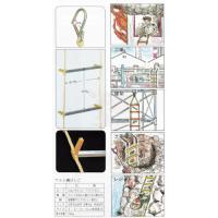 八ツ矢 避難用はしご|特長:脚が付いているので昇降が楽です。 ロープにワイヤ芯が入っているので燃えても切れません。