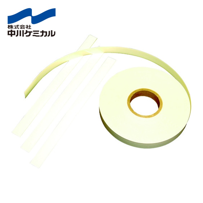 中川ケミカル 蓄光テープ|特長:テープ状なのでラインテープに最適です。 粘着加工済みなのですぐに貼ることができます。 光を吸収し暗闇で発光しますので停電時に安全に避難誘導できます。