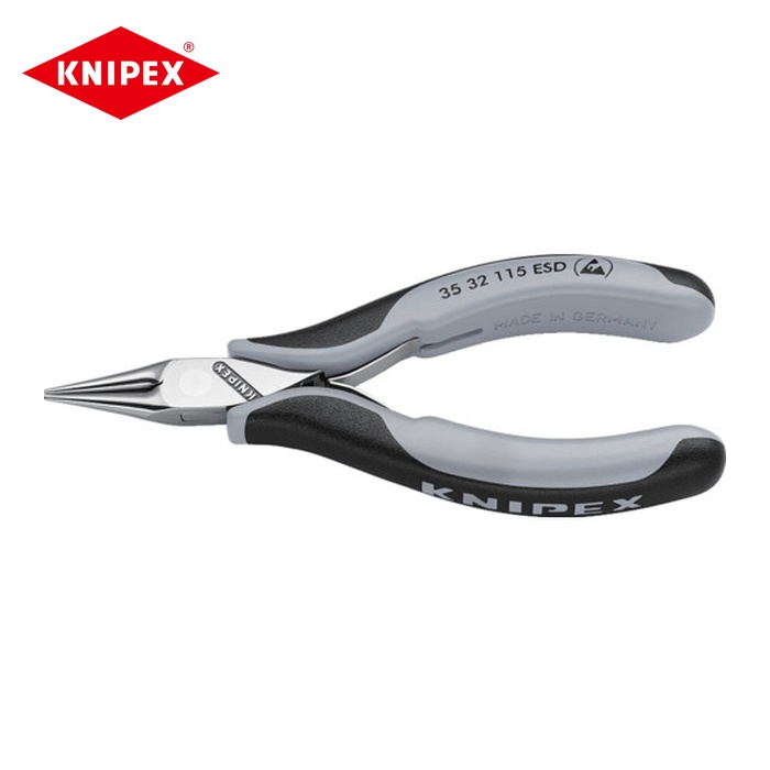 KNIPEX ノーズプライヤー|特長:極めて精密なエレクトロニクス関連、精密機器関連の組み立て作業に最適な高精度のプライヤーです。 ジョイント部は精密な3枚合わせ(ボックスジョイント)です。 静電気放電(ESD)タイプです。