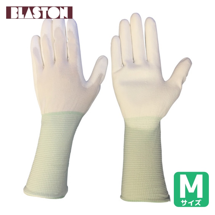 ブラストン BLASTON クリーンルーム 作業手袋 用手袋 PU手の平コート手袋 ロングタイプ 10双入 Mサイズ (1袋) 品番:BSC-17B-M