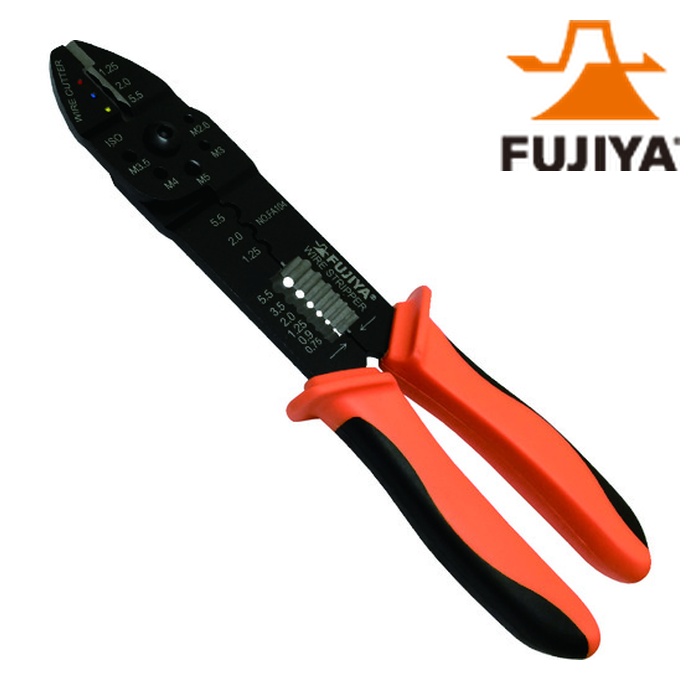 - 絶縁端子・裸圧着端子の圧着、被覆線のストリップ作業、電線の切断がこれ一本で可能です。