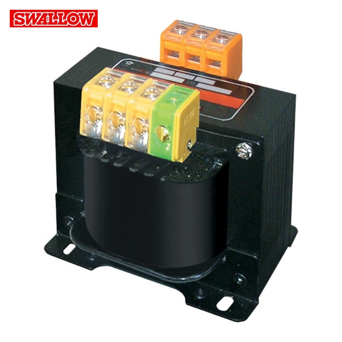 スワロー 変圧器|特長:産業用単相複巻トランスねじアップ式端子台です。 静電シールド付です。 樹脂成形ボビンの使用により、紙巻ボビンでの湿気やホコリなどによる絶縁不良などを防止できます。