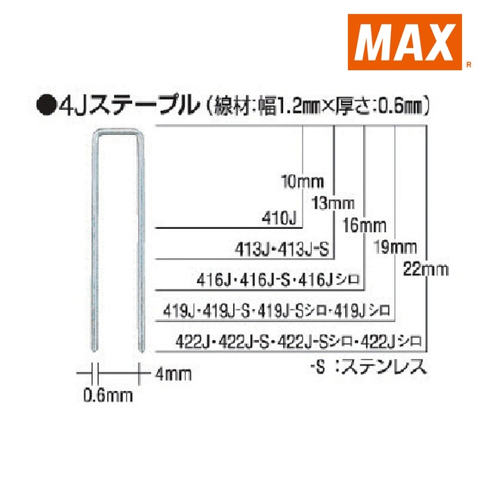 MAX マックス タッカ用ステープル 肩幅4mm 長さ16mm 5000本入り (1箱) 品番:416J