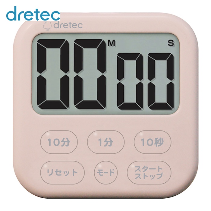 dretec タイマー|特長:キッチンクロックとしても使える時計機能付タイマーです。 見やすい大画面表示(63×35mm)です。 簡単に時間をセットできる6キータイマーです。