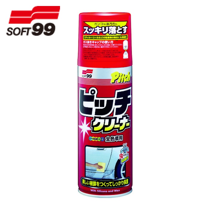 SOFT99 車輌用クリーナー|特長:洗車しても落とせない、ガンコなタール・ピッチなどの油性の汚れやこびりついた虫の死骸にスプレーするだけでカンタンに落とせます。 形式:エアゾール。
