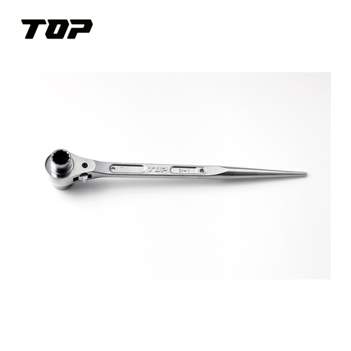 TOP 両口ラチェットレンチ|特長:正逆は切り替え爪式です。 安心のスタンダードタイプです。 爪の切り替え部の開口が大きく泥水、砂などが入ってもすぐ排除されます。
