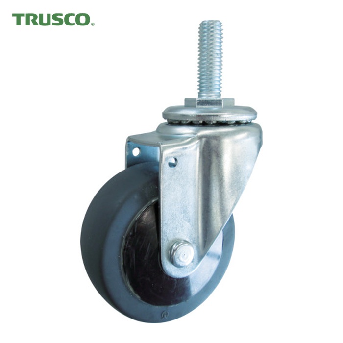 TRUSCO ねじ込み式省音キャスター(エラストマー車)|特長:走行音が静かで、床にスリップ痕がつきません。 運搬用のワゴンやラックに最適なねじ込み式キャスターです・屋内で使用するのに適した静音キャスターです。