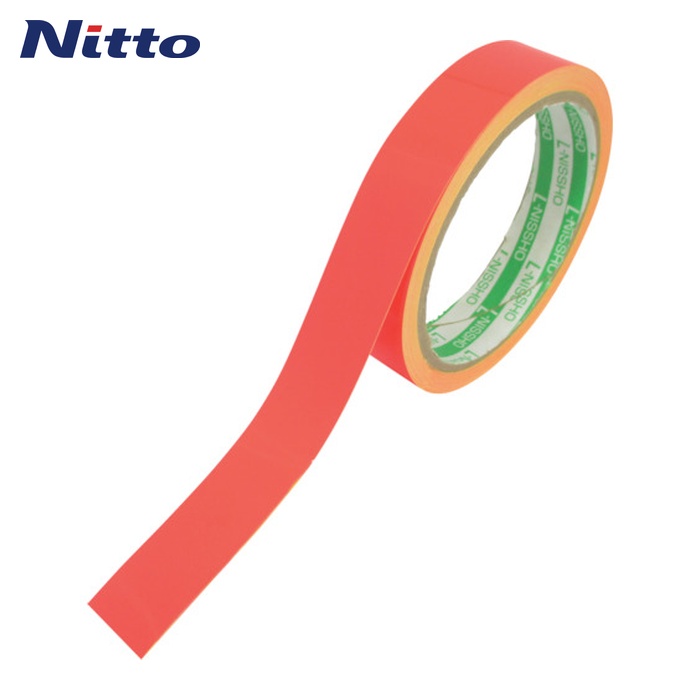 日東エルマテ 蛍光ラインテープ|特長:太陽光や照明により蛍光を発し鮮明に見えます。 設置が容易なはく離紙付です。