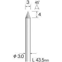| 仕様・規格 | ● 粒度(#):120 ● 刃径(mm):3 ● 刃長(mm):4 ● 軸径(mm):3 ● 全長(mm):43.5 ● 最高使用回転数(rpm):100000 ● 形状:円錐45°鈍角 ● 先端角(°):45 ● 適合素材:セラミックス、ガラス、工具鋼、合金鋼、超硬合金、サーメット |