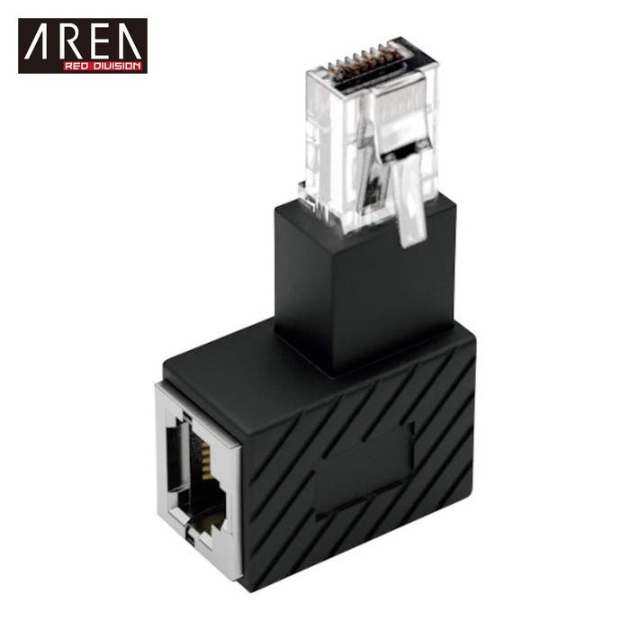 AREA 中継JJアダプター|特長:LANのツメを上にした状態で左向きに変更できます。 LANケーブルのコネクタの向きを90度回転させることで、LANケーブルの取り回しを改善します。