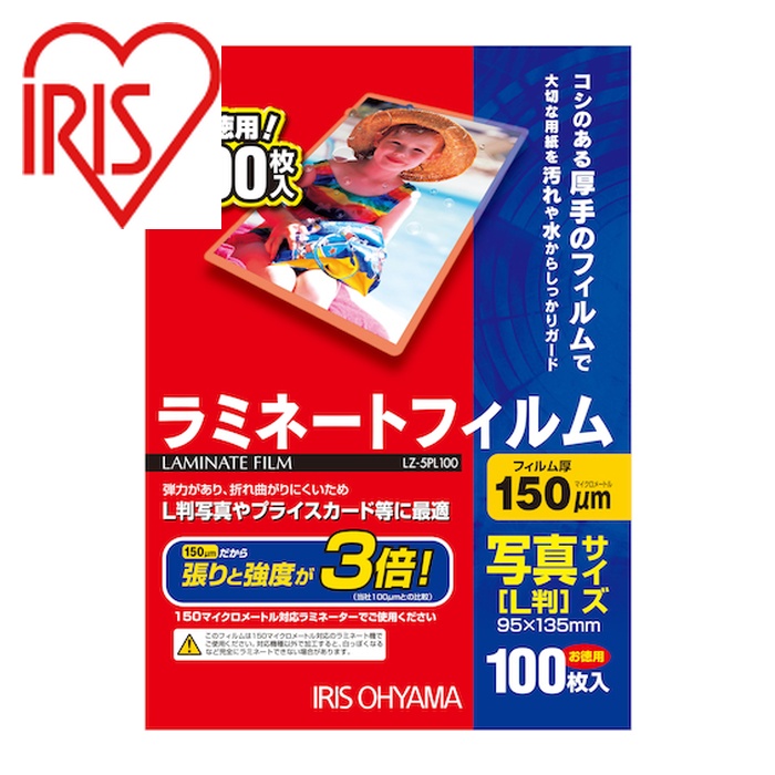 アイリスオーヤマ 539392 ラミネートフィルム 写真Lサイズ 100枚入 150μ (1箱) LZ-5PL100