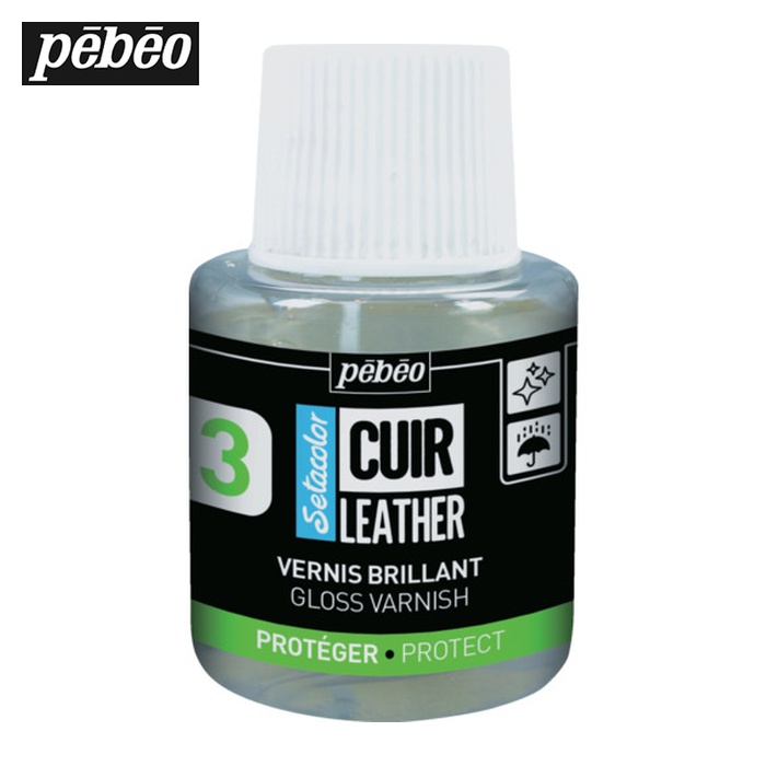 Pebeo 多目的塗料|特長:トップコート剤です。 グロス仕上げです。 革や合皮の上にペイントした箇所の引っかき傷、擦り傷、一般的な損耗を防ぐことができます。