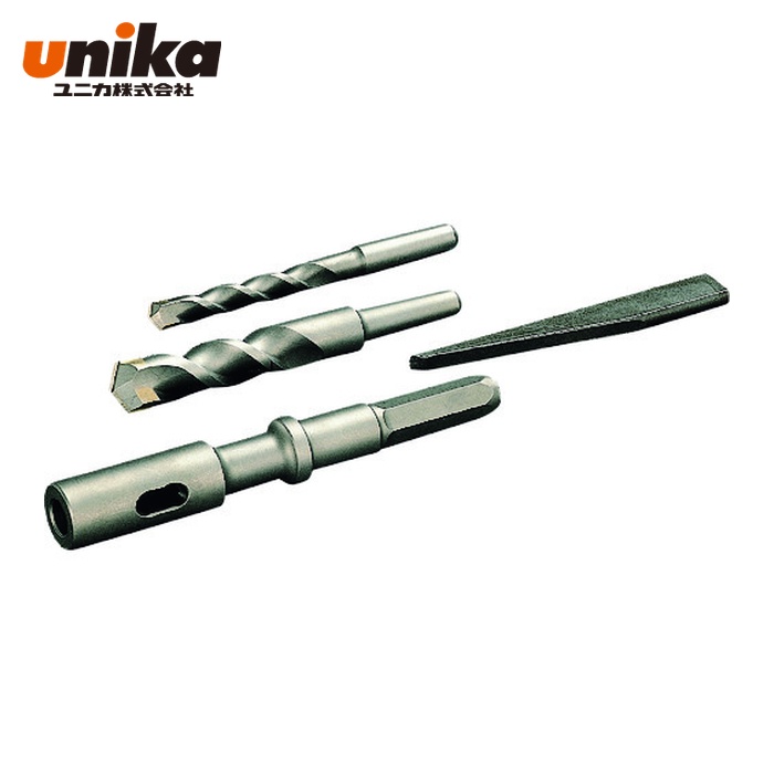 UNIKA コンクリートドリル(SDSplusシャンク)|特長:テーパー軸アダプター1本で、全サイズの交換が可能です。 経済性と作業性に富み、数多くの穴あけを必要とする現場に最適です。