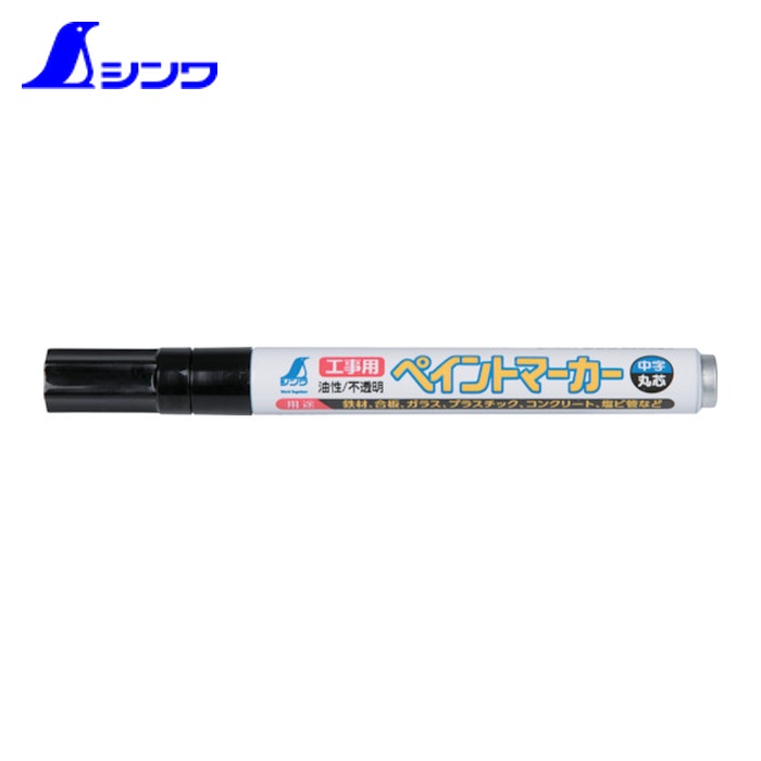 シンワ測定 建築用ペン 工事用ペイントマーカー 中字 丸芯 黒 (1本) 品番:78414