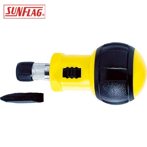 新亀製作所 サンフラッグ ラチェット式ドライバー スタビーラチェットクッションハンドル 刃先両頭+No.2-6 (1個) 品番:193