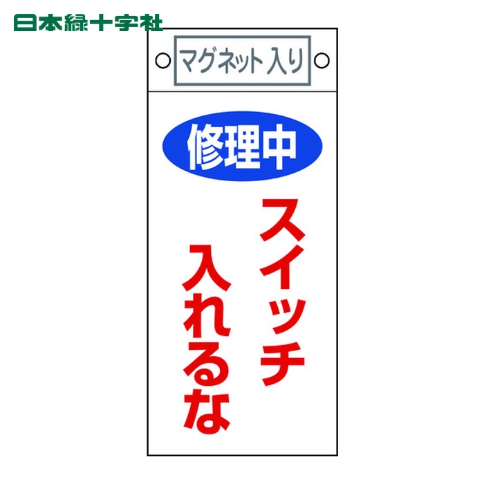 日本緑十字 安全標識 修理・点検標識 修理中・スイッチ入れるな 札-400 225×100 マグネット付 (1枚) 品番:085400