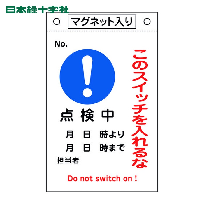 日本緑十字 安全標識 修理・点検標識 このスイッチを入れるな・点検中 札-523 260×160 マグネ付 (1枚) 品番:085523