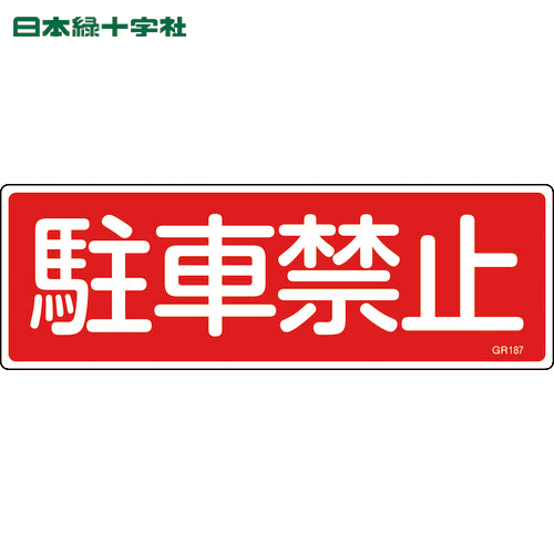 日本緑十字 安全標識 短冊型安全標識 駐車禁止 GR187 120×360mm エンビ 横型 (1枚) 品番:093187