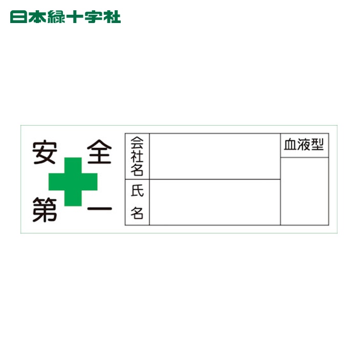 日本緑十字 ヘルメット用ステッカー 安全第一・会社・氏名・血液 30×80mm 10枚組 (1組) 品番:233105