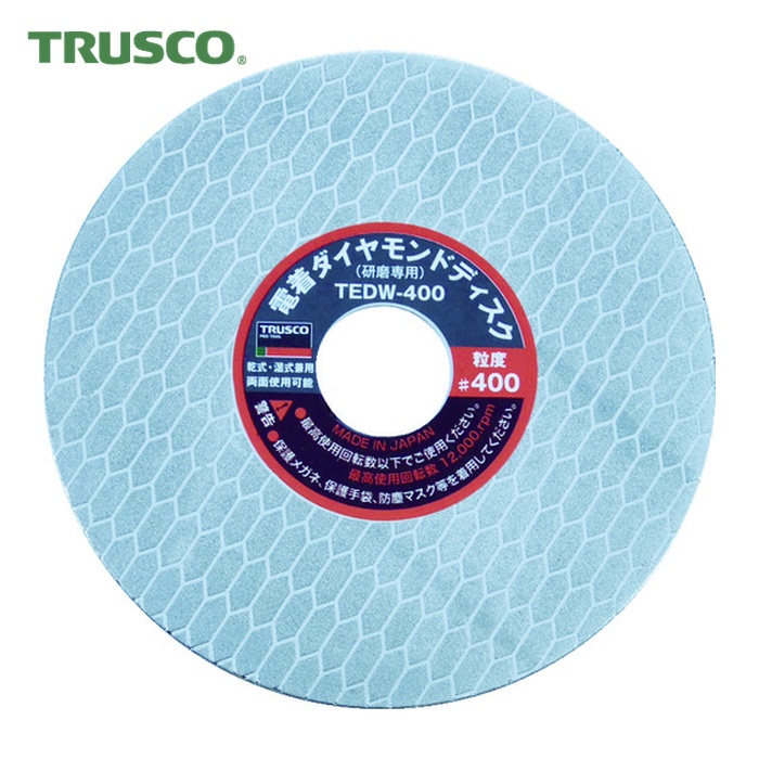 TRUSCO ダイヤモンドディスク|特長:ダイヤモンド砥粒を全面ではなくパターン状に分散し電着しているので研磨力に優れ、目詰まりしにくく研磨できます。 両面使用可能です。