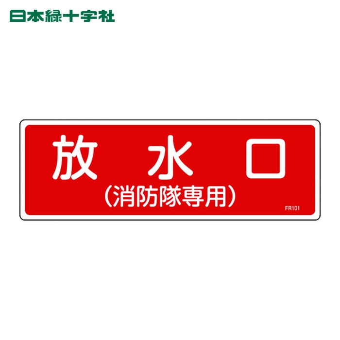 日本緑十字 消防標識 放水口(消防隊専用) FR101 100×300mm エンビ (1枚) 品番:066101