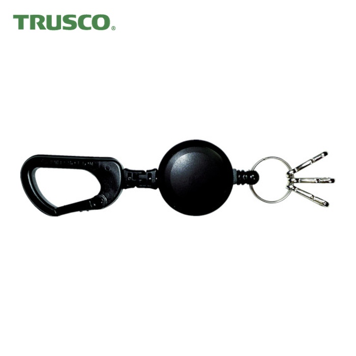 TRUSCO キーホルダ|特長:カラビナと一体化した伸縮自在のコードがついている便利なキーホルダです。 キーリング付です。 カラビナと一体化した伸縮自在のリールです。