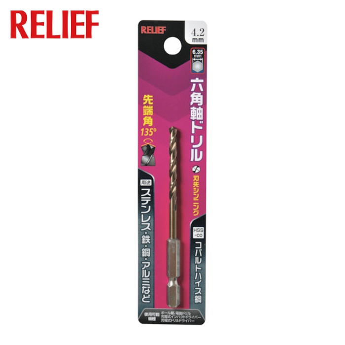 RELIEF レリーフ 六角軸ドリル コバルトハイス鋼 4.2mm (1本) 品番:26038