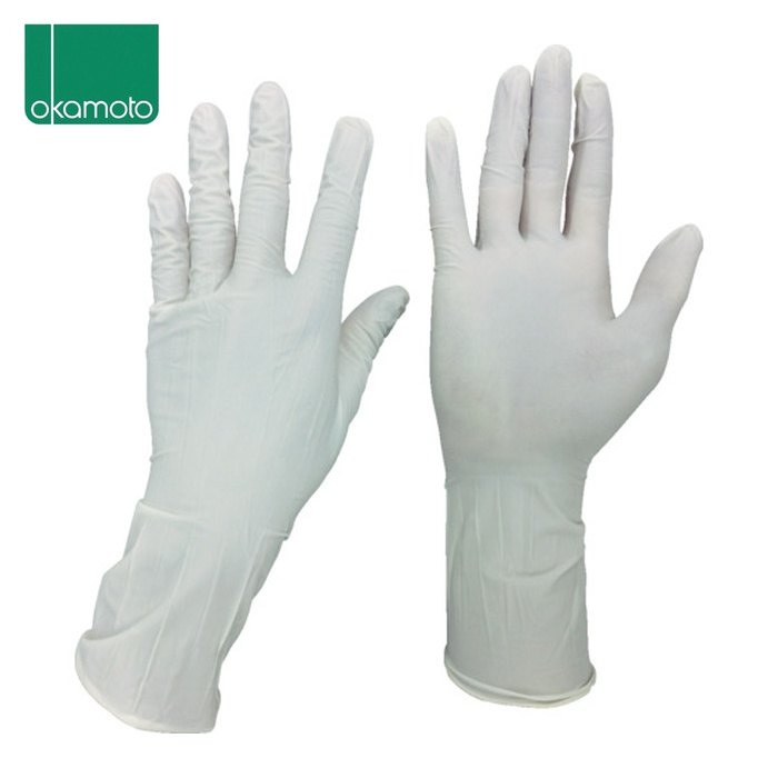 okamoto クリーンルーム用使い捨て手袋(天然ゴム)|特長:左右別の高品質な手袋です。 無菌作業・無塵作業に適しています。