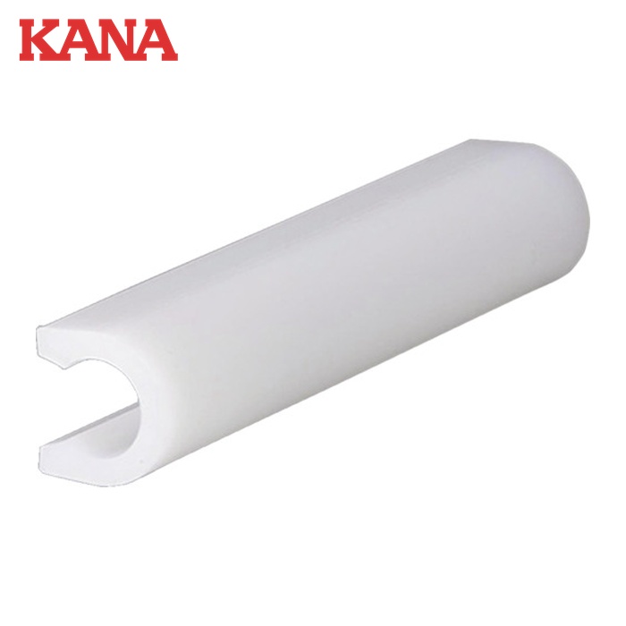 KANA 樹脂素材|特長:Ziegler低圧法によるオレフィン系プラスティックで平均分子量300万(光分散法)単位以上の超高分子量ポリエチレン(UHMW)です。 分子量が増大することによって一般ポリエチレンより耐摩耗性、耐衝撃性、耐薬品性、自己潤滑性等機械提督性が著しく向上し、これらの特性を生かし食品工業、充填機、コンベヤラインのレール、ガイドレールなどに用いられます。