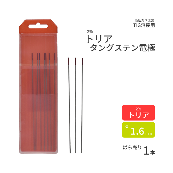 高圧ガス工業 TIG溶接 用 タングステン電極棒 トリタン 2% トリア ( トリウム ) 入 φ 1.6mm 150mm ばら売り 1本