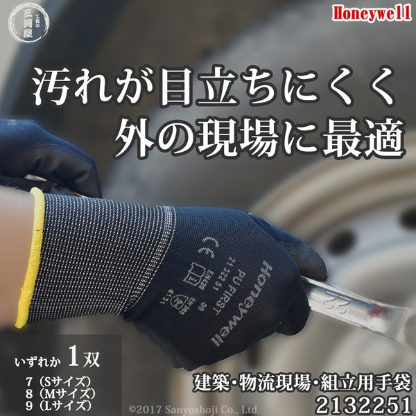 Honeywellの汚れの目立ちにくい作業用手袋、PUファースト ブラック(ピュアブラック)です。