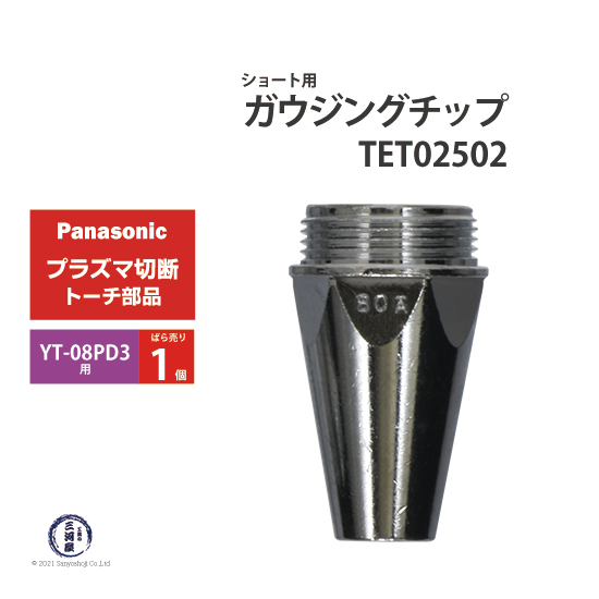 Panasonic ( パナソニック ) 純正 ショート用 ガウジングチップ TET02502 ばら売り 1個 切断トーチ YT-08PD3用です。エアプラズマ切断機でガウジングをするための専用チップです。ショート電極 TET02033 とセットでご使用ください。