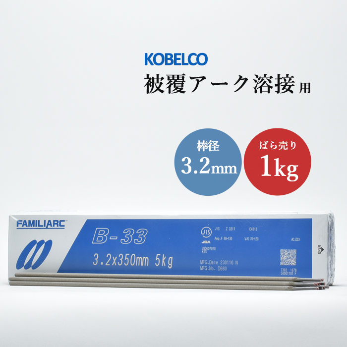 神戸製鋼 (KOBELCO) 被覆アーク溶接棒 FAMILIARC B-33 棒径 3.2mm×棒長 350mm ばら売り 1kgです。