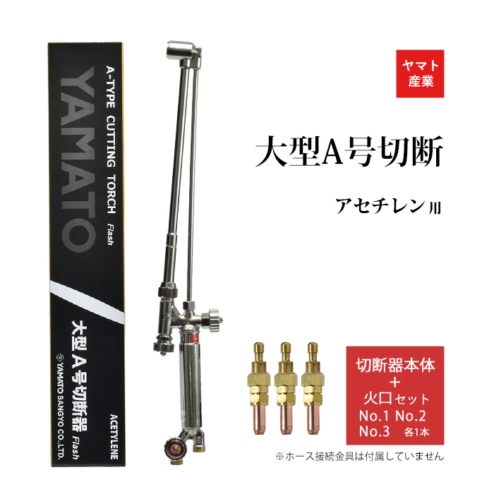 ヤマト産業 アセチレン 用 A型 切断器 ( A切 ) Flash 本体 と A型切断火口No.1、No.2、No.3のセット品 ホース取付金具なし
